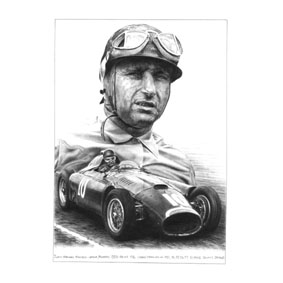 A tribute to Juan Manuel Fangio By Leon Evans Original - Pencil Limited Edition Print of 600 Print size 297mm x 400mm