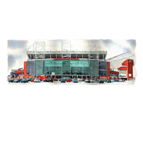 Subject - Old Trafford Original - Water colour Limited Edition Print of 600 Print size 220 x 540mm on 300gsm paper